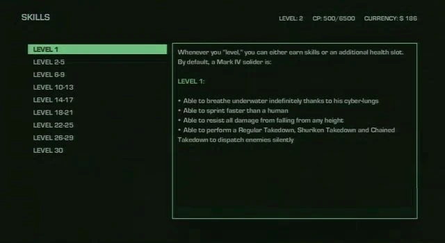 Sotto a estetica e potenziamenti sono catalogati tutti gli oggetti cosmetici e tutte le abilità che il protagonista può utilizzare, per incrementare le proprie prestazioni o per cambiare aspetto.