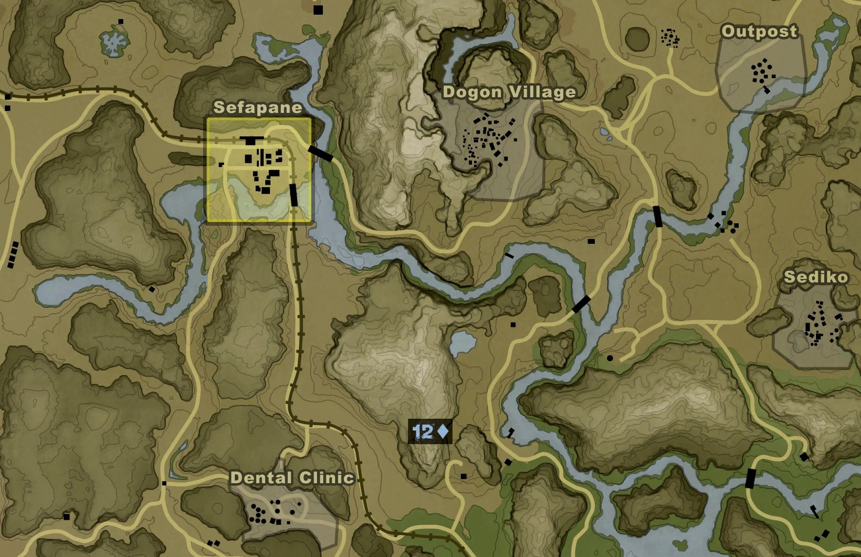 Лагерь патрульных | Patrol camp | Бова-Секо, юго-восток | Не известно (возможно, принадлежит государству, граничащему с БАС) | Акт 3 |