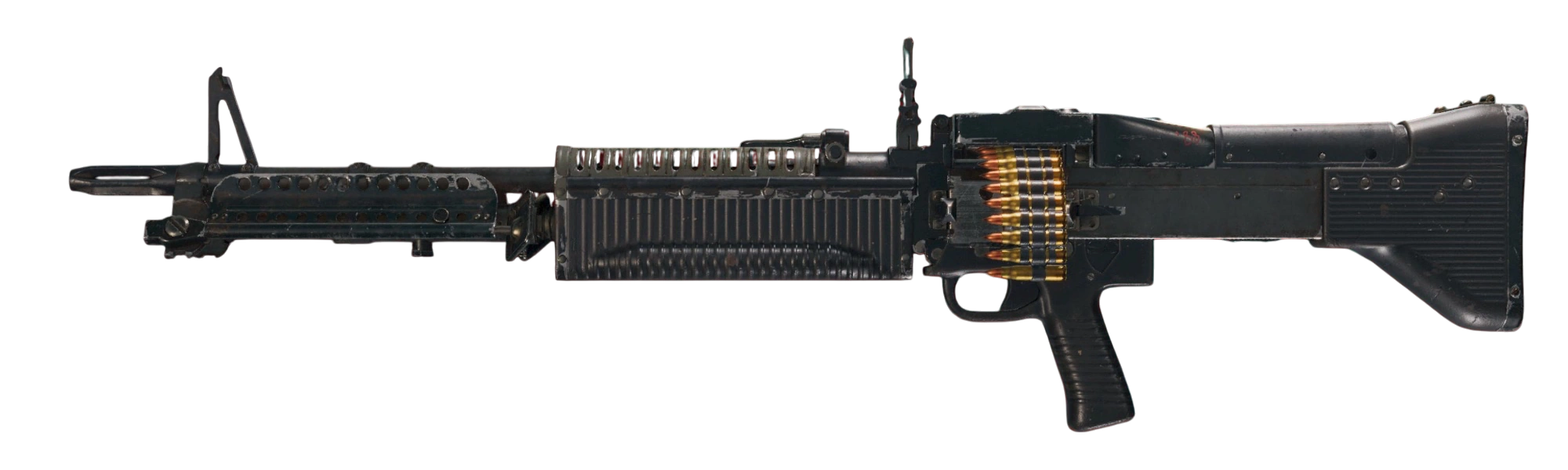 Описания в игре неоднократно отсылают к Сильвестру Сталлоне и, в частности, к серии фильмов «Рэмбо».- В отличие от M249, использует винтовочно-пулемётный патрон 7,62x51 NATO, хотя в игре и тот, и другой используют «пулемётный патрон».
