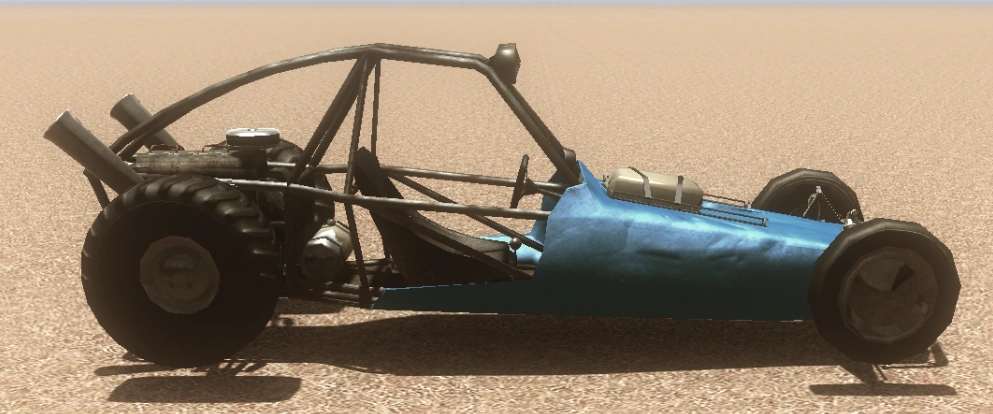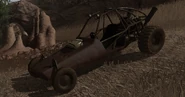 The buggy is the fastest and most manoeuvrable vehicle in the game. Unfortunately, the speed of this vehicle is paid for by its low armour factor. The buggy is susceptible to light enemy fire — six to ten rounds from a truck-mounted machine gun will slow the buggy down. It is not recommended that the buggy be used as an assault vehicle; instead, it should be used as a means of transport or exploration. Buggies are often found at either bus stops or safe houses. Buggies are never driven by enemies.