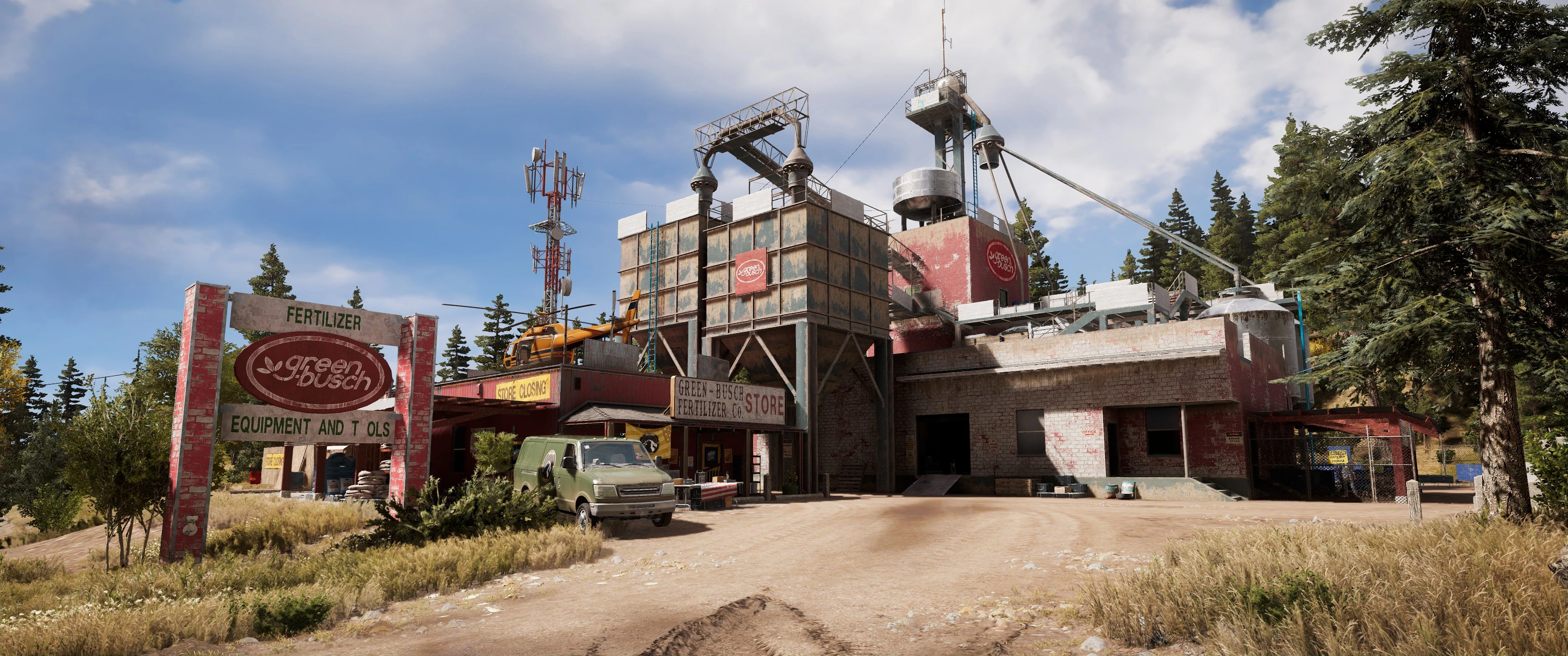 The Green-Busch Fertilizer Company is an Outpost mission and location in the Holland Valley region of Hope County in Far Cry 5. It is located directly West of the Grain Elevator, Northwest of Woodson Pig Farm, and Northeast of Sunrise Farm.
