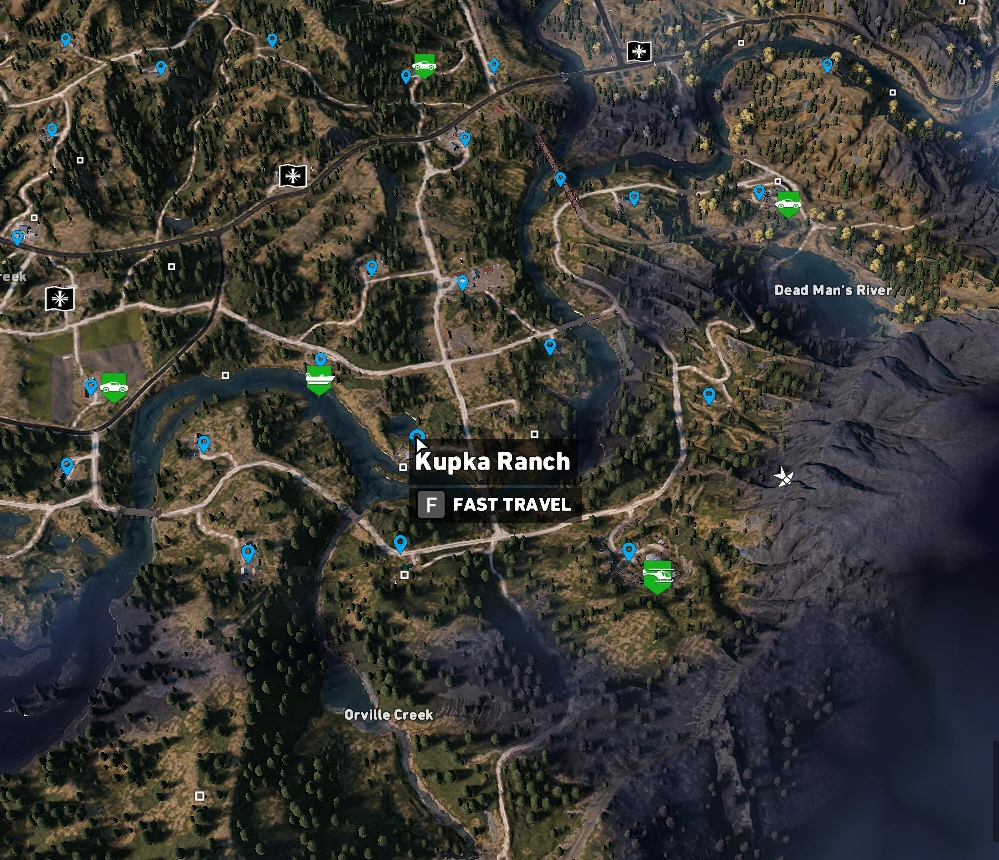 Kupka Ranch is the homestead of the Kupka family; notably, Zip Kupka, as he is the only one left. It is located in the Holland Valley region, north of the Miller Residence, east of the Hyde Barn, and southeast of the Sawyer Residence.