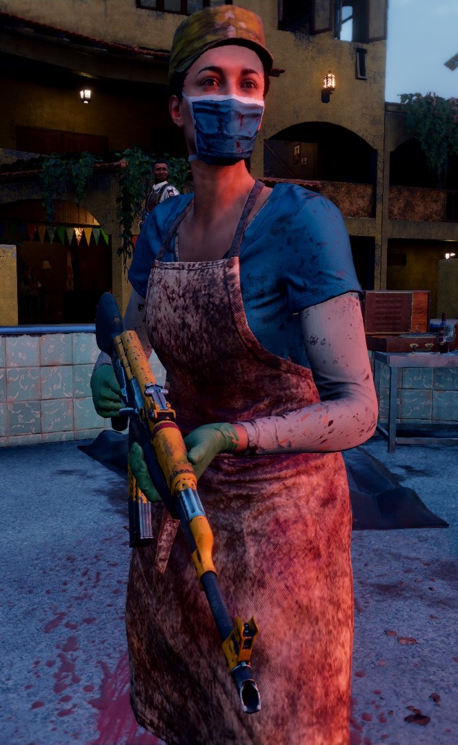 The Dentist was an FND officer, a subordinate of Admiral Benítez, they called her the dentist for the torture she did of her to her prisoners and for her work in the FND. She uses the same FND Medic weapon and uniform, although the latter is just the hat.